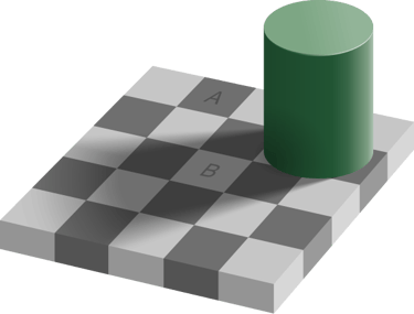 Constancy makes square A appear darker than square B, when in fact they are both exactly the same shade of gray.
