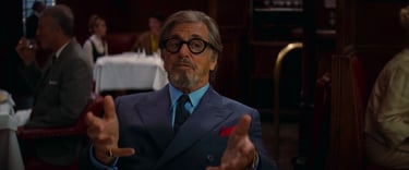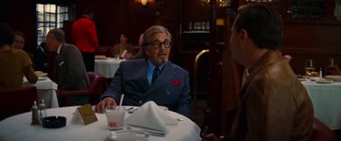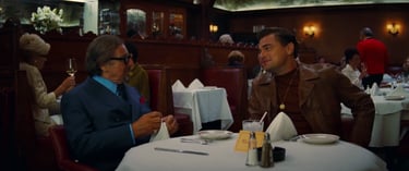 One of the scenes I usually show to demonstrate this is from Once Upon a Time In Hollywood. Hollywood star Rick Dalton sits in a restaurant with bigtime producer Marvin Schwarz. Schwarz talks about how much he enjoyed Rick Dalton’s movies, but very quickly we get the sense that Dalton is not proud at all… he’s actually kind of embarrassed by his own work. That is all subtextual. Look at the scene closely, and you’ll see visual choices—like the fact Rick Dalton, played by Leonardo DiCaprio, is always shot in a tighter close-up than Marvin Schwarz, played by Al Pacino.