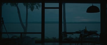 In Arrival, the first shot is from inside the lake house, not necessarily what we imagined when reading the first line in the script.
