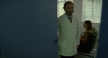 One director who really mastered third person is Alfonso Cuarón—you might know his work from Gravity, Children of Men, or Roma. But let’s look at an earlier film of his, Y Tu Mamá También. There’s a great moment in that film where a young woman waits at a clinic. She’s sitting quietly, and the camera is above her, looking down. Then the camera starts moving back slowly, handheld, revealing the empty waiting room. When the nurse calls her name, she stands and walks right toward the camera. We lead her a bit walking, but once she enters the doctor’s office, the camera stops. We don’t go in. For a moment, we see her through the doorway, and then the doctor closes the door—right in our face.