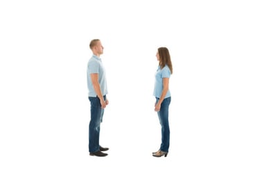 Imagine two people standing in a white frame, facing each other. It feels still. Now tilt one of them slightly, like they’re mid-fall. Suddenly the image feels very different. That sense of movement comes from the basic shape of the line, because of how we associate diagonal lines with instability and gravity.