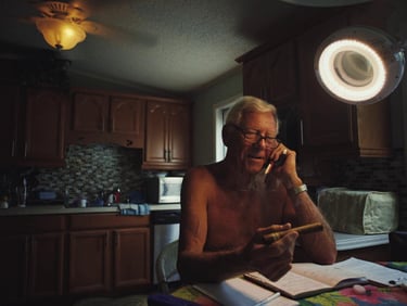 Take Some Kind of Heaven, a documentary that follows residents of The Villages, a massive retirement community in Florida. The film uses an observational style and an objective narrative perspective. It doesn’t push you to side with one character, but invites you to think about the community and the people in it from a distance. That decision shapes pretty much all the choices of lens and camera placement in the film.